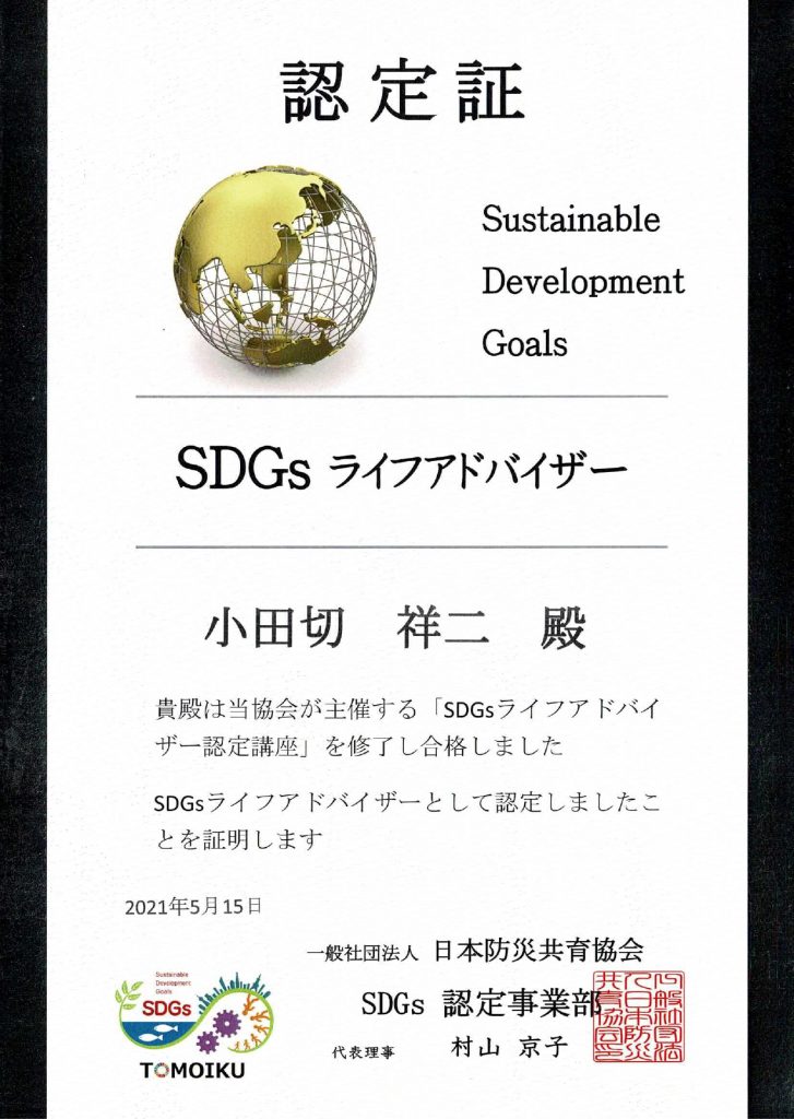 林エンジニアリング株式会社社員が日本防災教育協会が主催する「SDGs ライフアドバイザー」の認定を受けました。